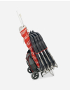 Ruedas anchas, base plegable y asa retráctil. Plegado muy compacto en segundos.