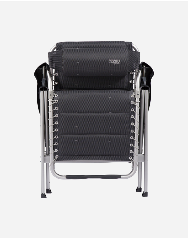 Tumbona relax de extraordinaria calidad con almohada incluida. Es la tumbona más cómoda del mercado. Ofrece una comodidad absoluta al ser reclinable en infinitas posiciones. El tejido se fija a la estructura mediante cordón elástico. El acolchado es muy confortable y altamente transpirable y no retiene la humedad, lo que permite que se seque mucho más rápidamente que los tejidos acolchados tradicionales. El respaldo y reposabrazos son ergonómicos. La tumbona se puede reclinar en infinitas posiciones. bloqueables mediante un practico freno en el reposabrazos en la posición deseada. Estructura anodizada en H para mayor estabilidad y solidez. La tumbona tiene un asiento extra ancho (54 cm), extra profundo ( 55cm) y extra alto (54 cm). Una vez plegada, esta tumbona es muy compacta y fácil de transportar. Carga máxima: 130 Kg.