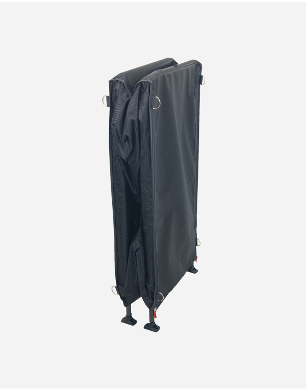 Armario muy estable y extra alto. ¡Muy fácil de montar gracias a su exclusivo sistema de plegado! Este armario tiene estructura de aluminio pintada epoxy negro. La cubierta está fabricada con poliéster 600D súper resistente y alberga 2 prácticos estantes en su interior. Las patas se pueden ajustar individualmente y tienen conteras autoniveladoras para asegurar una estabilidad total sobre cualquier tipo de superficie. Incluye también una barra para transformar la zona de almacenaje en ropero. Bolsa de transporte incluida.