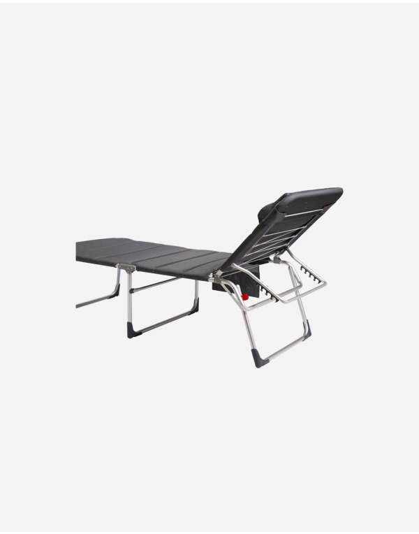 Extraordinaria tumbona extra alta y extra ancha. Estructura de aluminio reforzado con 3 patas altas. Respaldo reclinable en 4 posiciones para un óptimo confort. Tejido acolchado Deluxe transpirable que permite el paso del aire y el agua a través de él, por lo que nunca acumula suciedad ni malos olores. El tejido se fija por debajo mediante cordón elástico lo que permite ajustar su firmeza. Bolsillo portaobjetos para guardar el libro, llaves, móvil... Una vez plegada es muy fácil de transportar. Medidas plegado:(82,5x71,5x22,5cm.). Carga máxima: 140kg.