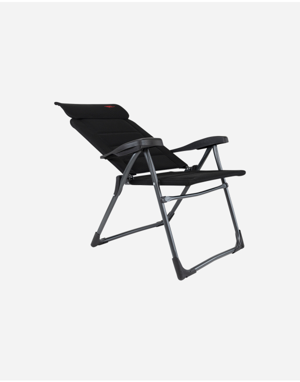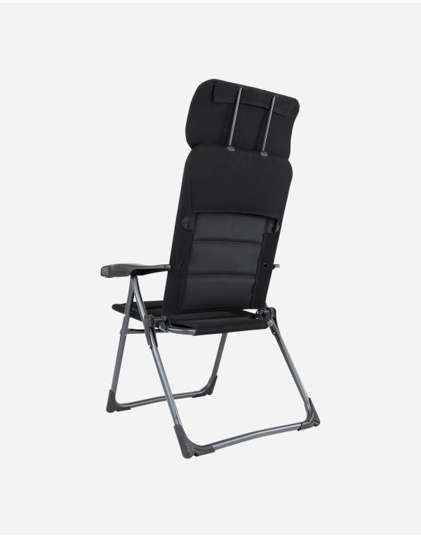 Silla de posiciones extremadamente compacta. Es la Silla de camping más plana. Se pliega en plano con un grosor de tan solo 6cm. Proporciona un extraordinario confort gracias a su respaldo reclinable en 7 posiciones y su cabezal ergonómico Compact regulable en altura (longitud del respaldo: 64-81 cm.). Tejido acolchado Air-Deluxe 3D, antialérgico y repelente de ácaros según certificado OEKO-TEX Standard 100, que permite una extraordinaria ventilación. La Silla tiene estructura en U con estabilizadores y tubos de espesor superior para mayor solidez y estabilidad. Plegado fácil y súper compacto (92x64x6 cm). Ideal para remolque tienda, camper, furgo, van...