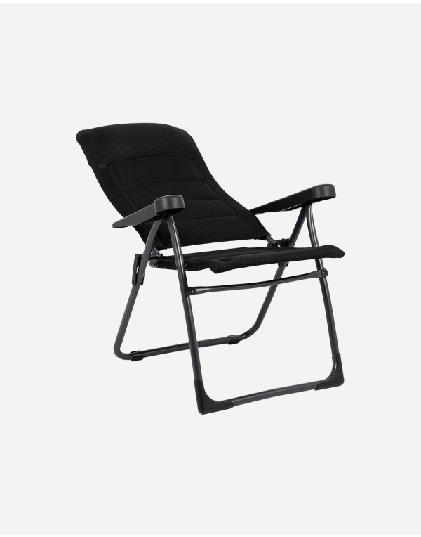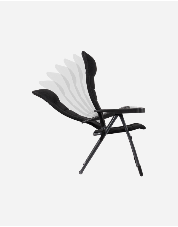 Silla de posiciones ligera y súper resistente. Proporciona un extraordinario confort gracias a su respaldo reclinable en 7 posiciones. Tejido acolchado Air-Deluxe 3D, antialérgico y repelente de ácaros según certificado OEKO-TEX Standard 100, que permite una extraordinaria ventilación. Tanto el respaldo como el asiento y reposabrazos son ergonómicos. La Silla tiene estructura en U con estabilizadores y tubos de mayor espesor para mayor estabilidad y solidez. Plegado compacto. Altura asiento: 46cm. Profundidad asiento: 38cm. Ancho asiento: 48cm. Longitud respaldo: 64/80cm. Carga máxima: 110 kg.
