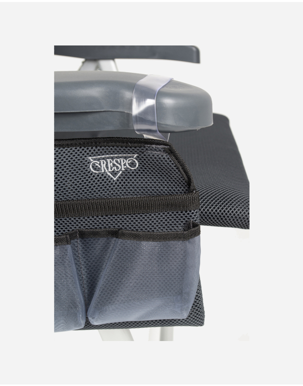 Práctico organizador para el reposabrazos de la silla. Este organizador universal se adapta a casi todas las sillas. Con 4 útiles compartimentos para tener ordenados tus pequeños enseres.