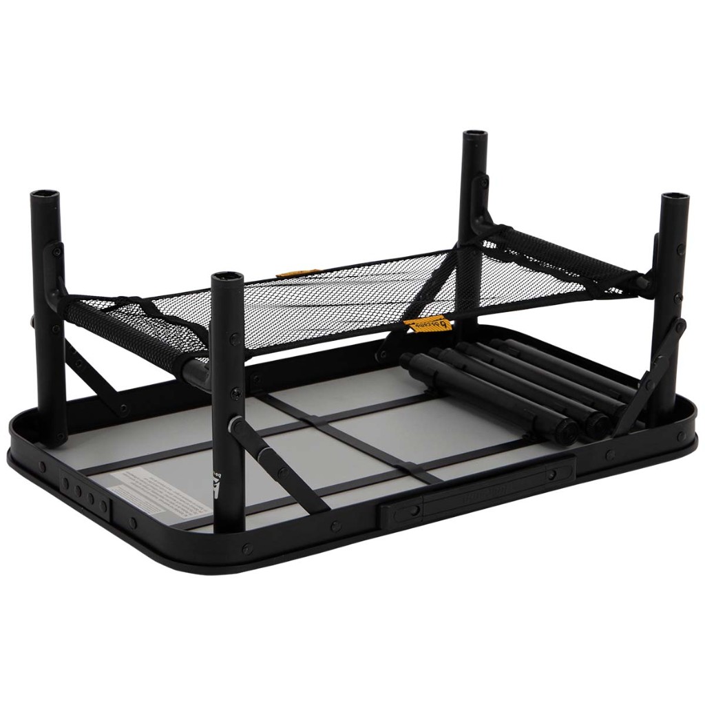 • La mesa está equipada con una red bajo el tablero de MDF para guardar objetos, y un asa que facilita su transporte.