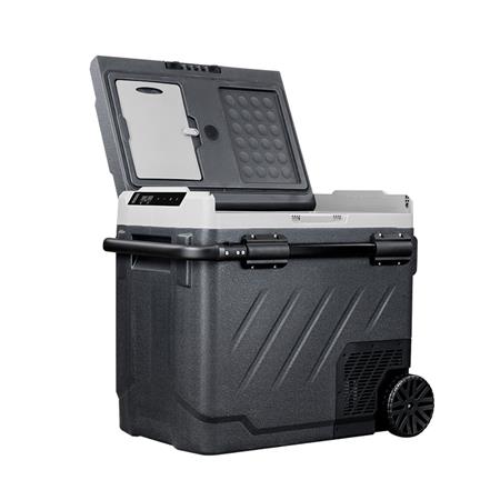 • Portavasos incorporado, asa telescópica y ruedas para un fácil transporte.